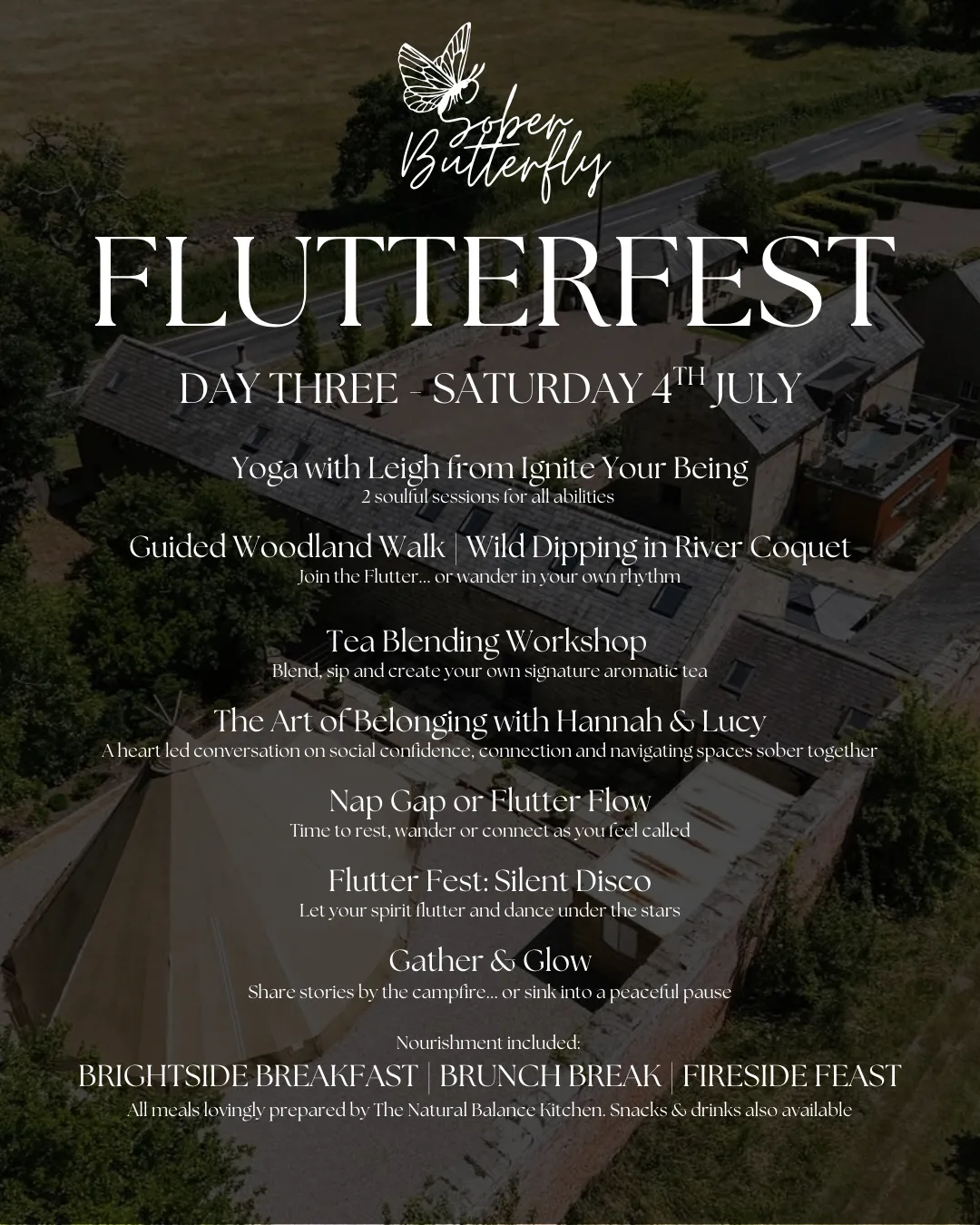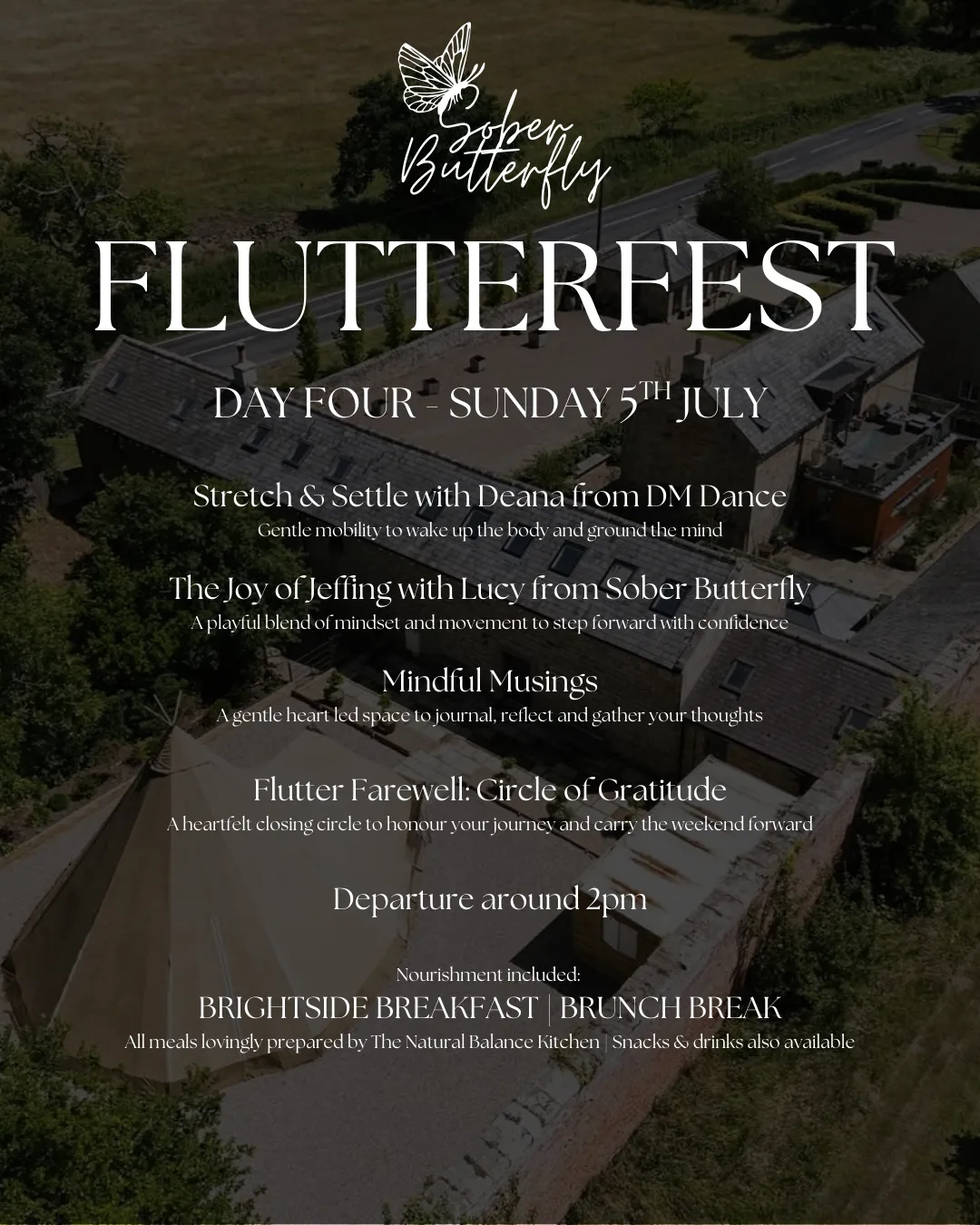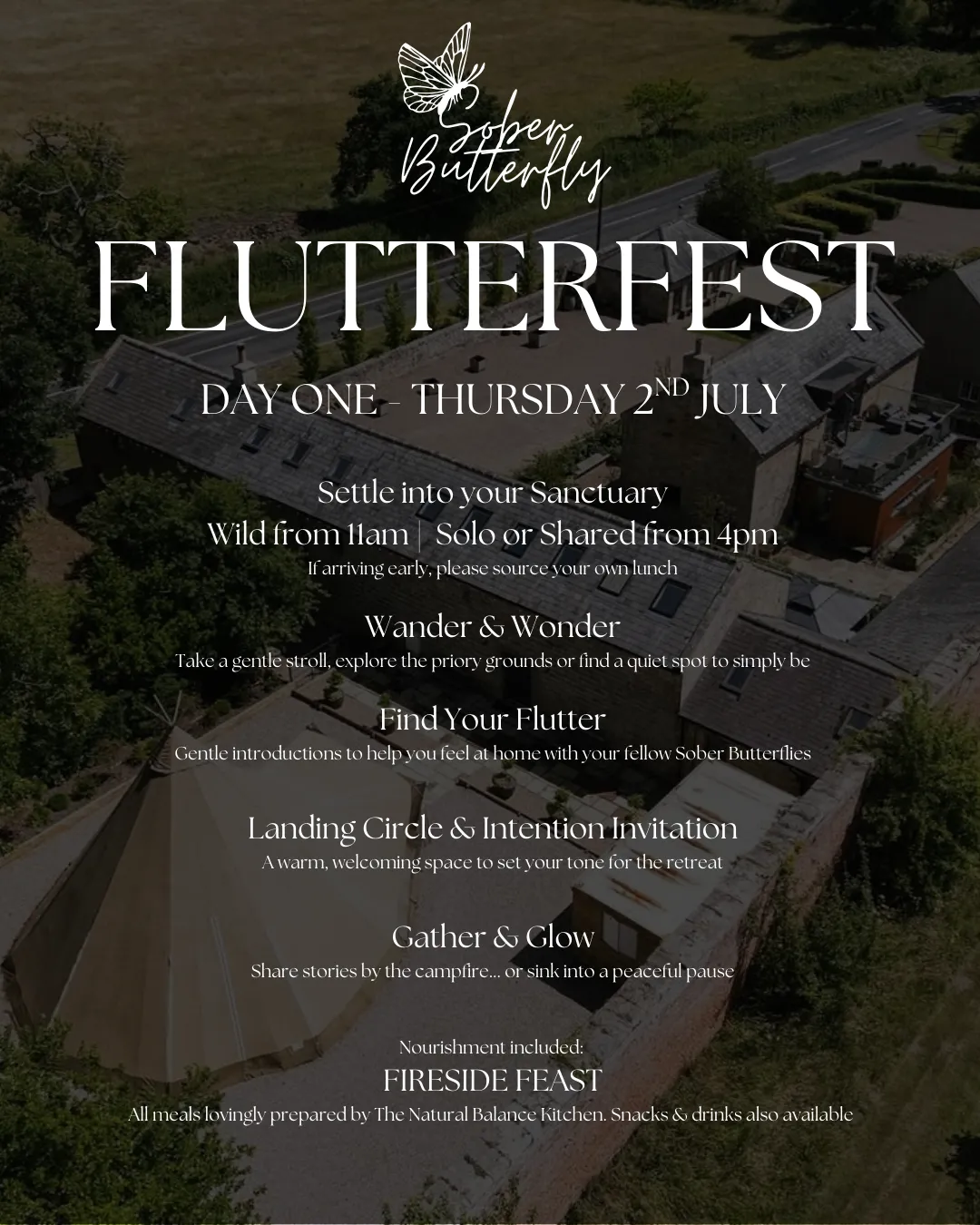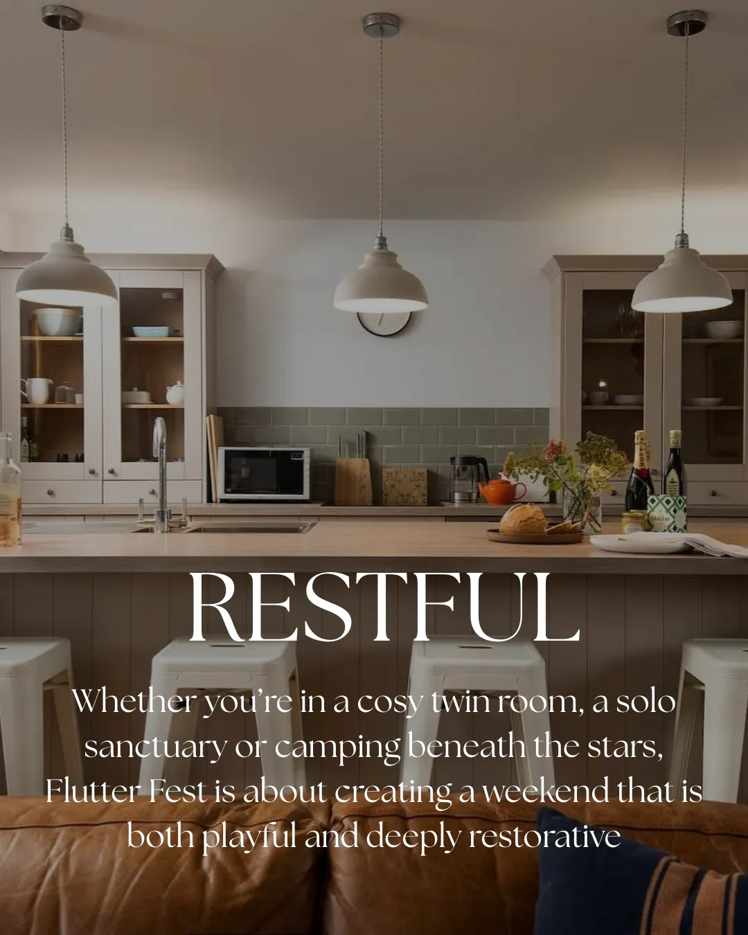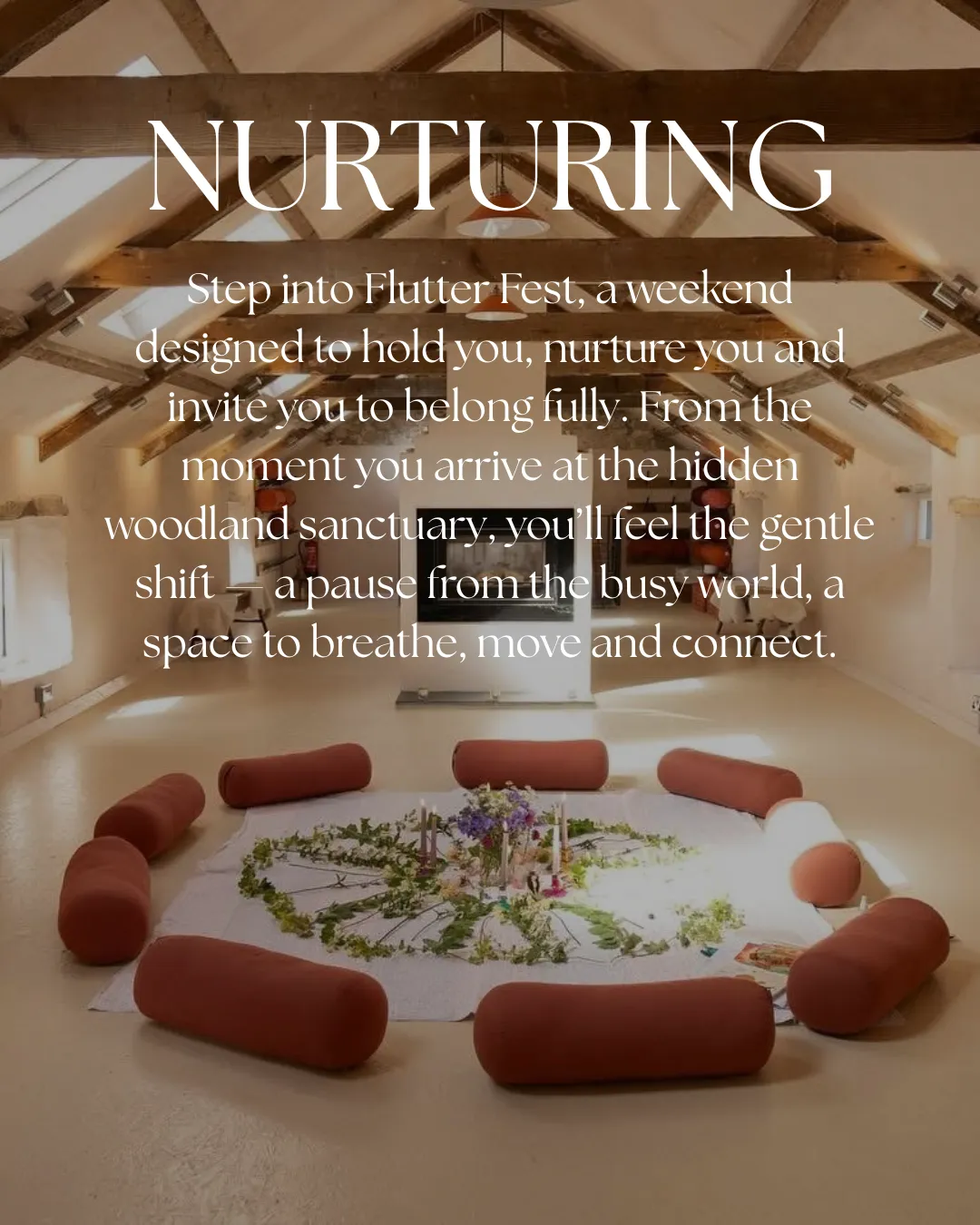 It's a blend of both. Flutter Fest blends rest, movement, creativity, deep connection with moments of celebration including a silent disco! You can lean into the stillness... or into the dancefloor.